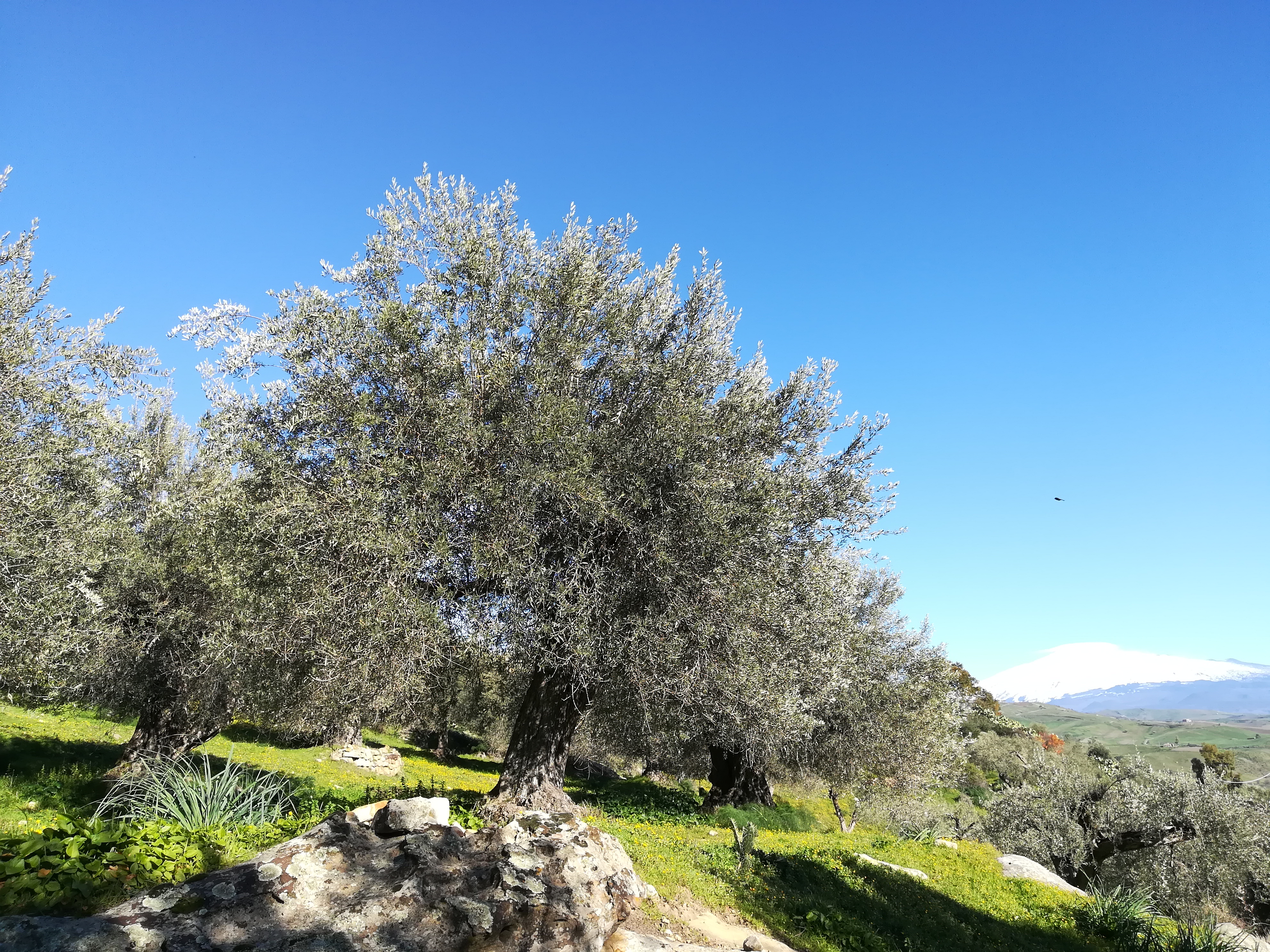 Biancolilla, Minuta, Moresca, Giarraffa e Nocellara Etnea vegetano rigogliose, esposte a sud-est e rivolte verso l'Etna.